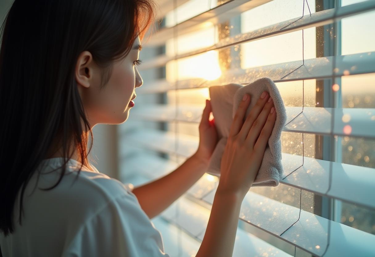 Plissees benötigen eine gezielte Reinigung, um Vergrauung, Flecken und Gerüche zuverlässig zu verhindern. Staub entfernen, vorsichtig feucht reinigen und bei geeigneten Modellen die Badewannenmethode anwenden – so bleibt die Faltstruktur erhalten. Profi-Tricks wie regelmäßiges Lüften, UV-Schutz und sofortige Fleckenentfernung sorgen für maximale Haltbarkeit und ein dauerhaft gepflegtes Erscheinungsbild. Plissee reinigen ohne Vergrauung. Schonende Reinigung eines Plissees zur Vermeidung von Vergrauung und Flecken. Darstellung einer professionellen Plissee-Reinigung mit Mikrofasertuch zur Pflege von Faltenstruktur und Stoff.